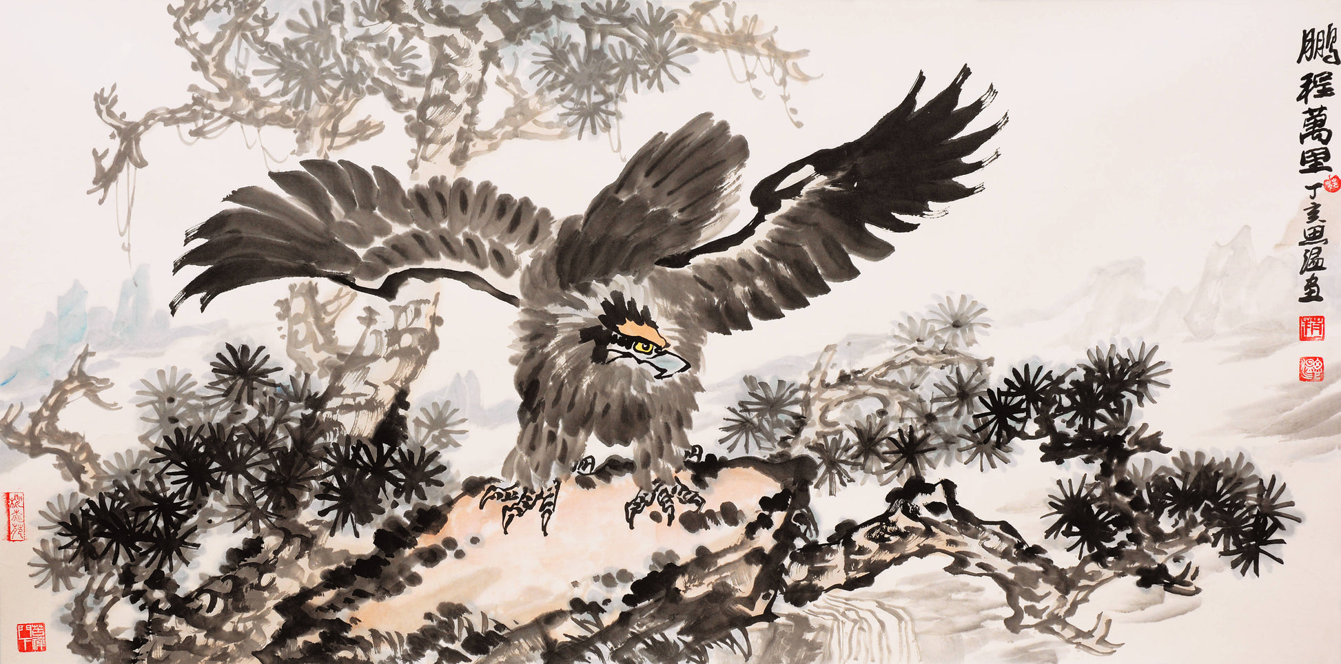 1983年著名国画大师李苦禅先生为弟子赵思温作品 题款"神形兼备“